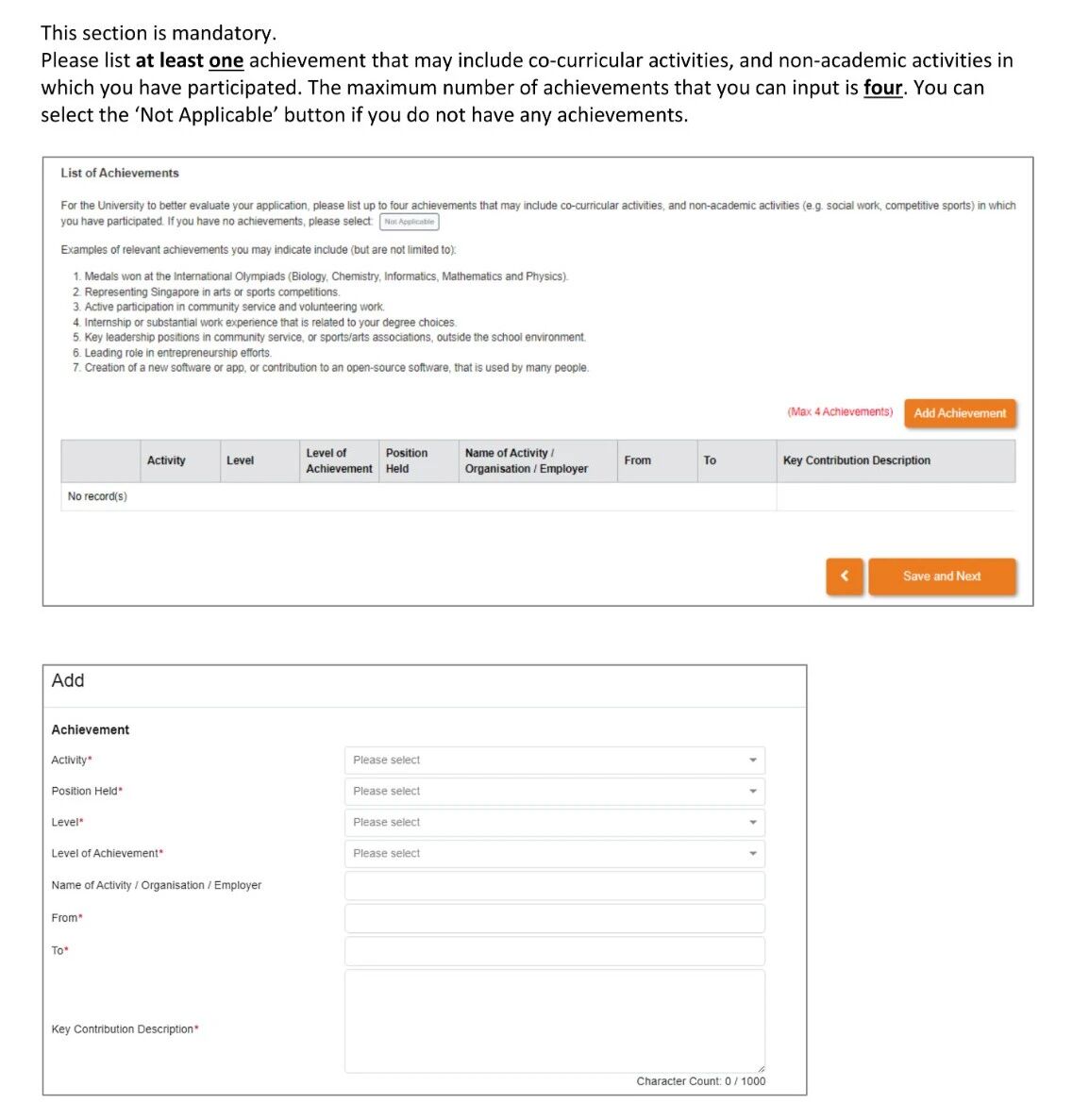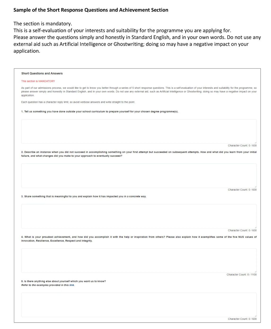 作为申请的一部分,您需要指出最多三项成就并回答五个简答题。请诚实地用自己的语言回答这些问题,因为它们将被视为您整体评估的一部分。
