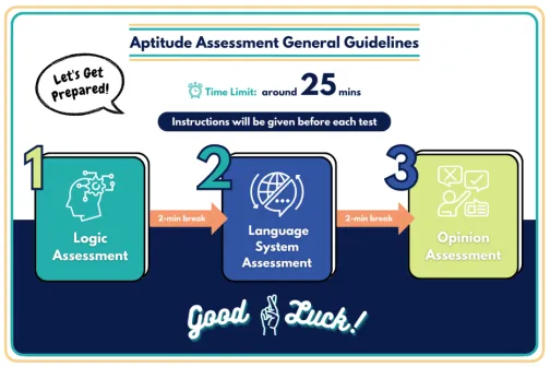 港大能力测验(Aptitude Test)在线上以英文进行,时长在30分钟以内,包含Logic Assessment、Language System Assessment和Opinion Assessment三个环节。