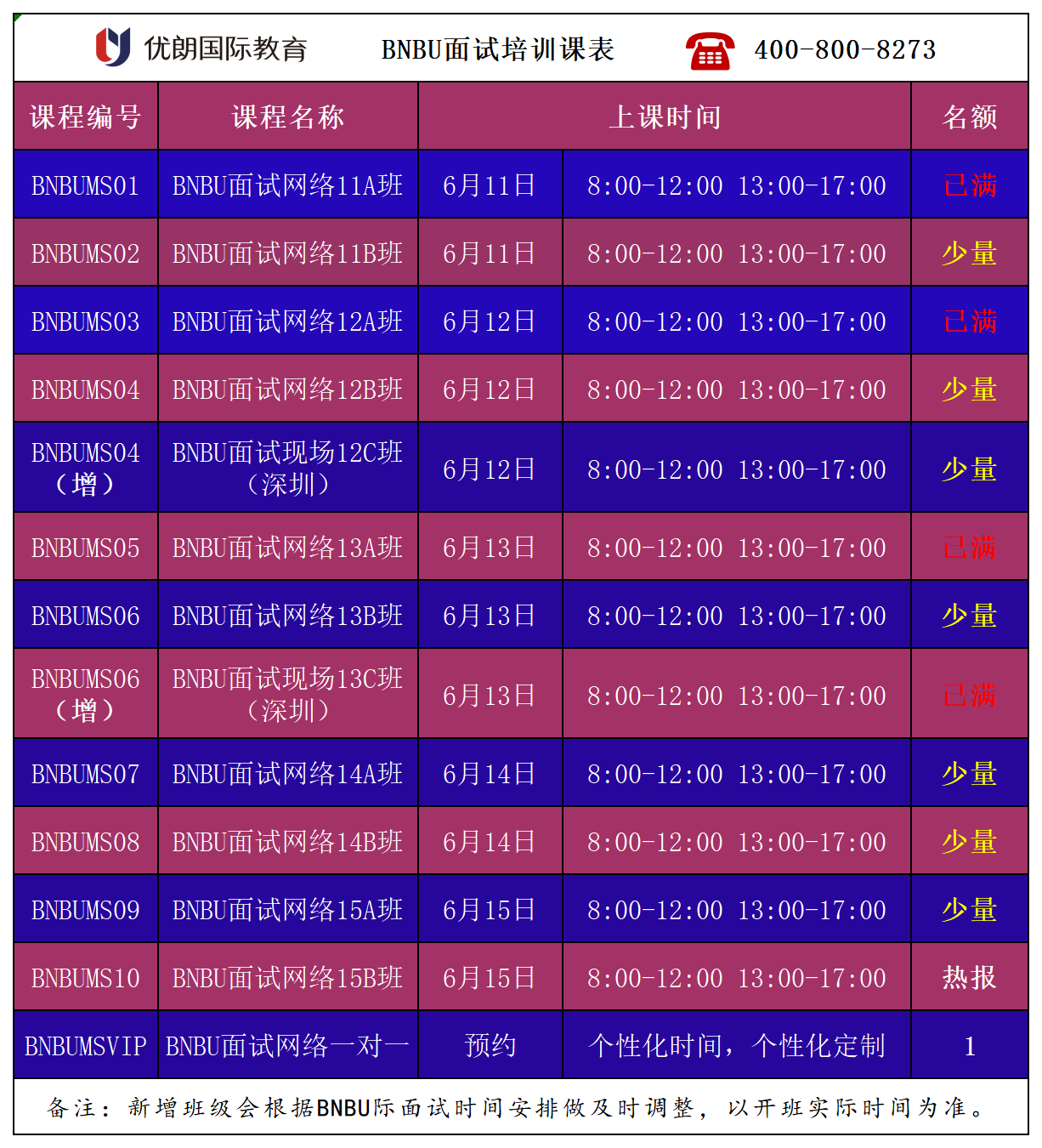 优朗坚持以学员为核心,依托18年培训服务经验,为BNBU面试学员提供全程无忧的服务与保障,让考生安心备考、家长放心托付: