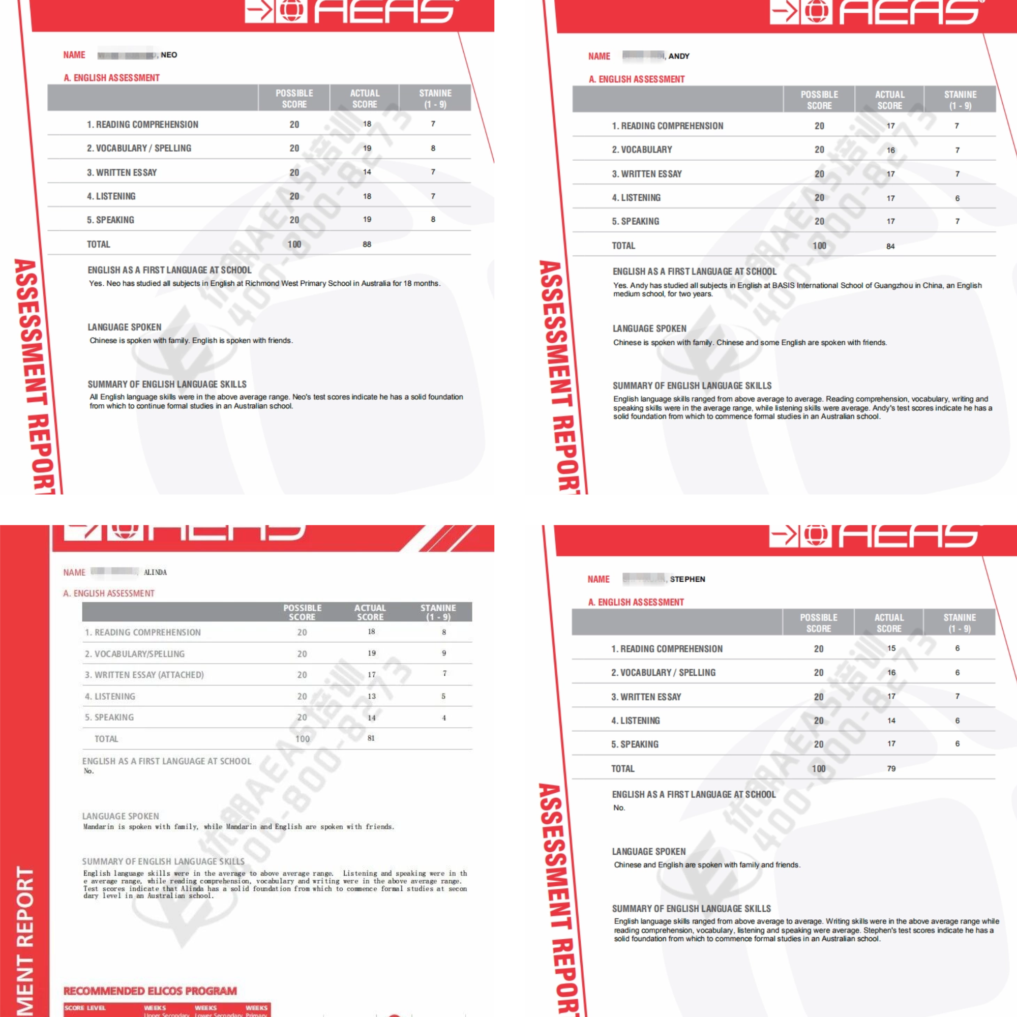 Neo|AEAS英语88分(满分100)|全模块超平均水平